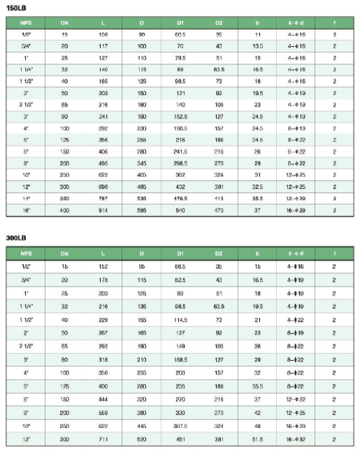 Pressure: 150LB, 300LB, 600LB, 900LB.